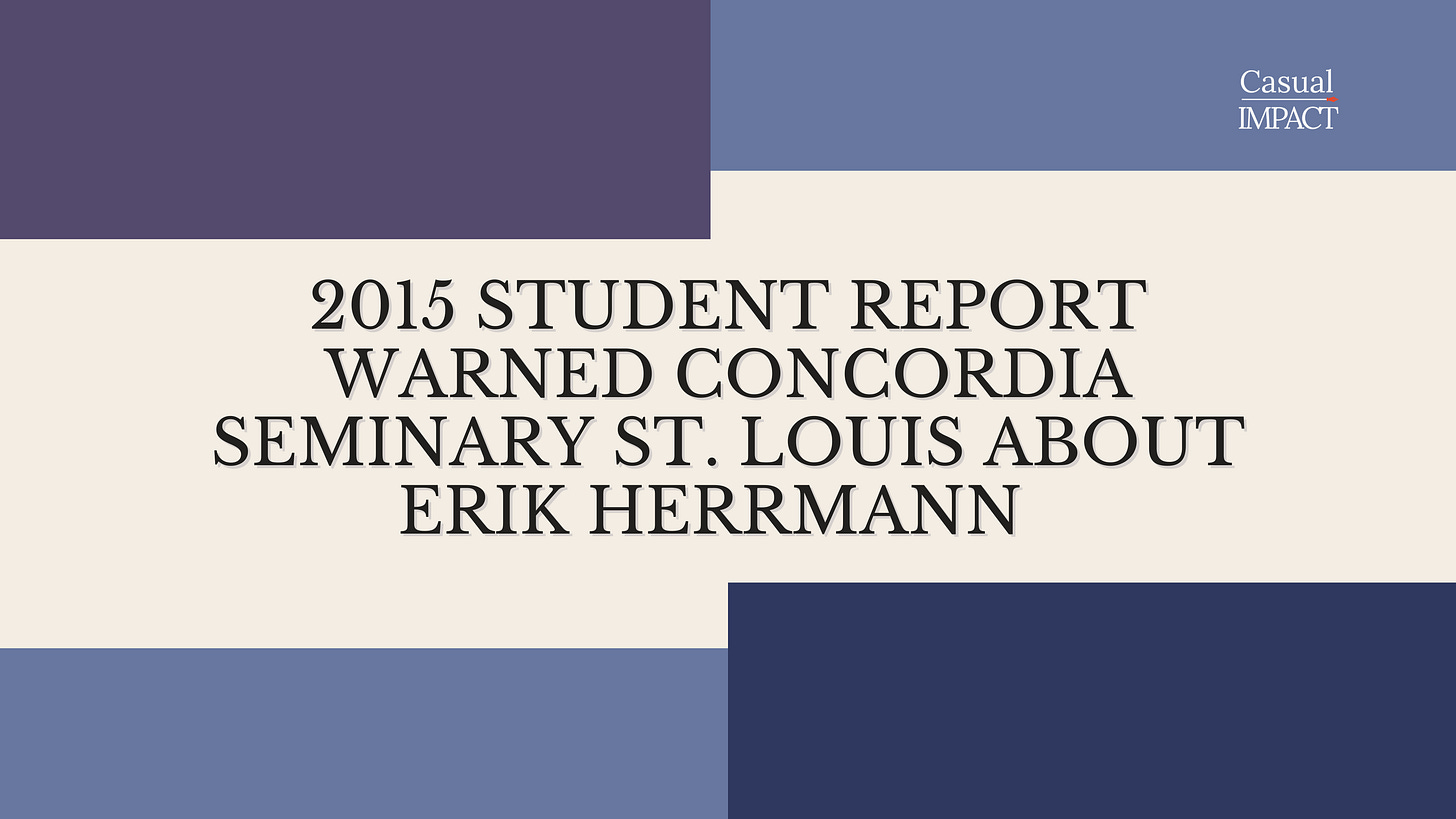 2015 Student Report Warned Concordia Seminary St. Louis About Erik Herrmann